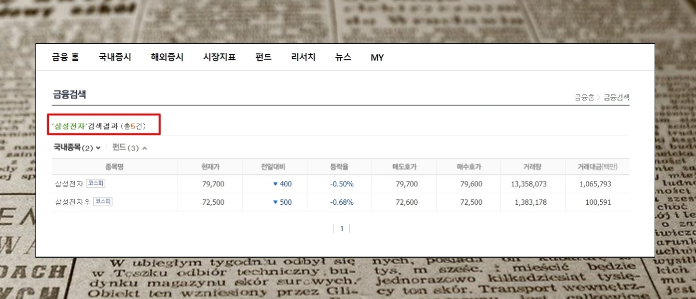 주식 투자를 하고 있을 때에는 본인이 관심을 가지고 있는 종목에 관한 뉴스만 보는 것이 편리한데요. 사이트 안에 있는 검색창에 종목 이름을 입력한 후 엔터키를 눌러 보세요. 요즘 인기가 많은 종목 중 하나인 삼성전자에 대한 뉴스를 살펴보도록 하겠습니다.
