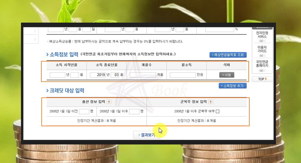 국민 복지를 위하여 국민연금 제도가 마련되어 있습니다. 꾸준히 납부를 하는 것이 우리 자신에게 여러 모로 도움이 되는데요. 자신이 얼마나 냈고, 나중에 얼마나 되돌려 받을 수 있는지 알고 싶다면 전용 계산기를 이용하면 간단히 조회 할 수 있습니다. 생각보다 어렵지 않으니 순서대로 따라해 보시길 바랍니다.