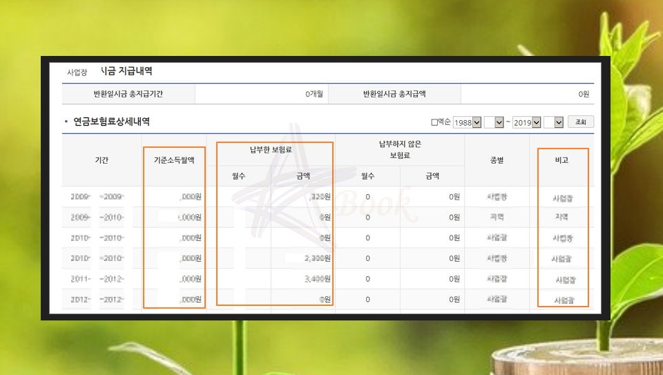 지금까지 우리가 낸 금액을 상세하게도 볼 수 있어요. 기준소득원액과 사업장에 대한 내용도 확인할 수 있어요. 소득액과 납부액을 확인해보고, 제대로 된 금액이 제대로 납부가 되었는지 꼼꼼히 확인해 보세요.