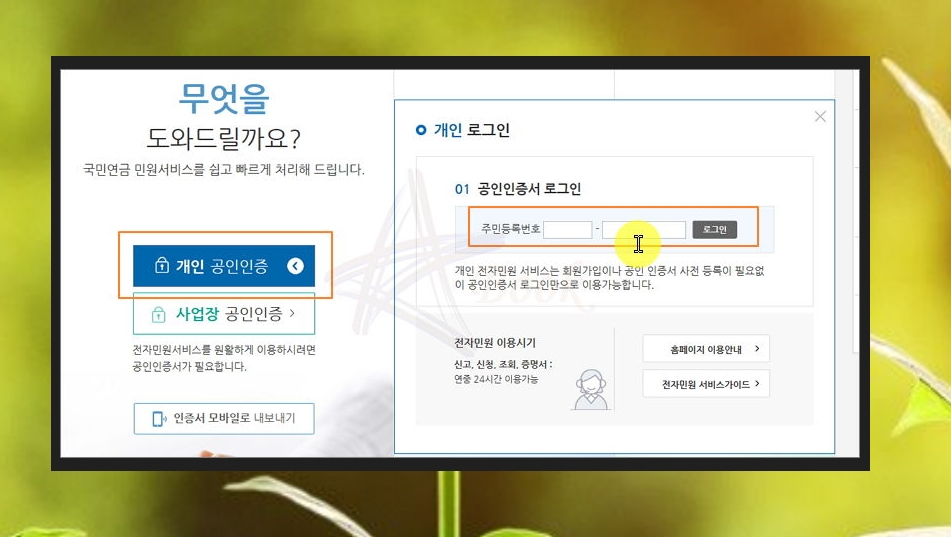 사이트에서 국민연금 납부액 조회를 하려면 본인 인증이 꼭 필요해요. 본인 인증을 할 때에는 공인인증서가 필요하고요. 인터넷 뱅킹을 하시는 분이라면 공인인증서가 있을 거에요. 개인 전자민원 서비스의 경우에는 사전 등록이 필요 없어서 편해요.