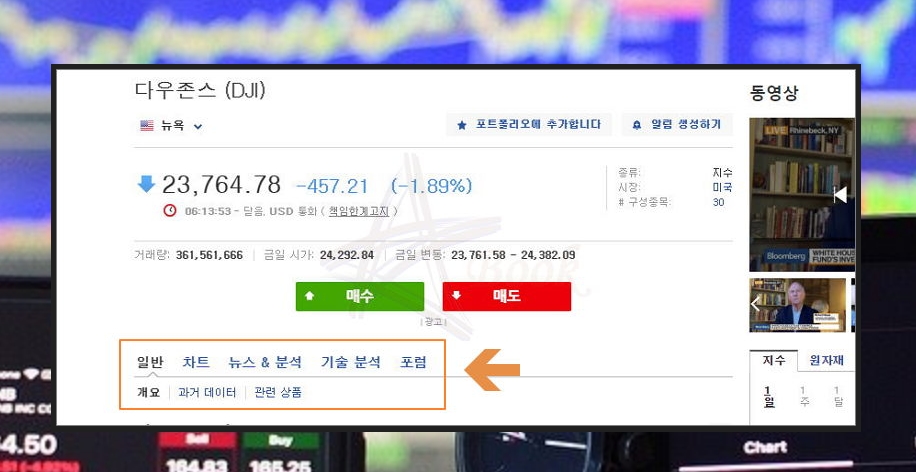 국내 경제는 미국의 영향을 받을 수 밖에 없습니다. 그렇기 때문에 국내 주식 투자자들은 미국의 여러 지표들을 실시간으로 확인하고 있는데요. 이번 시간에는 다우지수에 대해 제대로 알아보도록 하겠습니다. 시세, 차트, 뉴스, 분석 자료 등 여러 가지 정보를 모두 실시간으로 조회할 수 있습니다.
