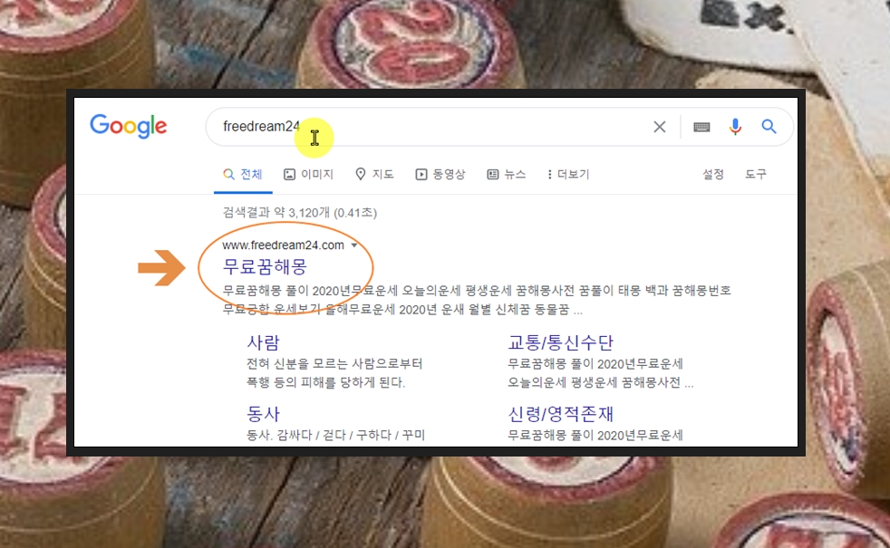두 번쨰는 꿈해몽을 통해 로또복권에 사용할 번호를 추천 받는 방법이에요. 무료꿈해몽 사이트를 이용할 것인데요. 검색 창에 freedream24를 검색하면 쉽게 해당 사이트를 찾을 수 있어요.