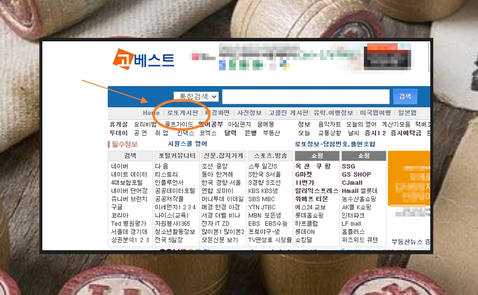 고베스트 사이트에 접속했어요. 이곳에서는 여러 가지 많은 서비스를 제공하고 있는데요. 이 중에서 "로또 게시판" 메뉴를 선택해 주세요.