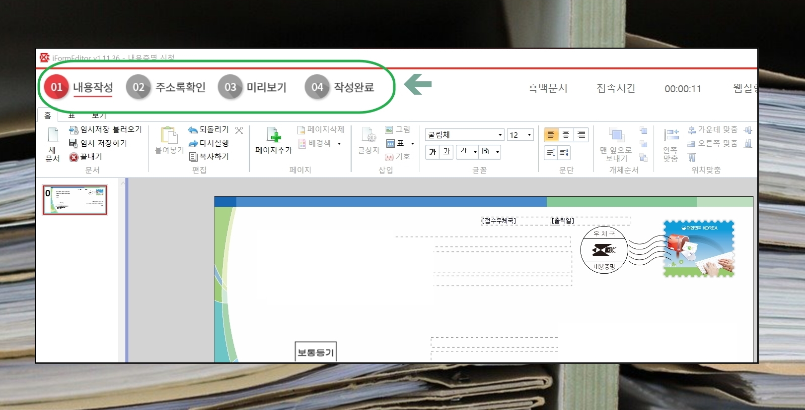 다음과 같은 우체국 프로그램을 사용하면 내용증명 쓰기는 물론이고, 발송까지 쉽게 할 수 있습니다. 주소록 확인이나 미리보기 같은 절차를 거치기 때문에 잘못 발송되는 일을 상당 부분 방지할 수 있죠.