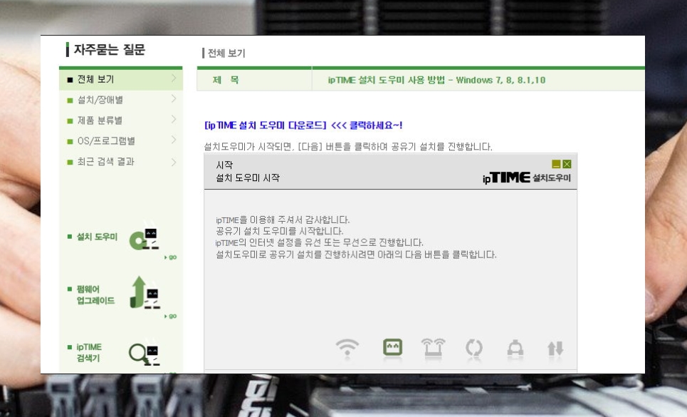 iptime 공유기 설치도우미 다운로드 설치 안내
