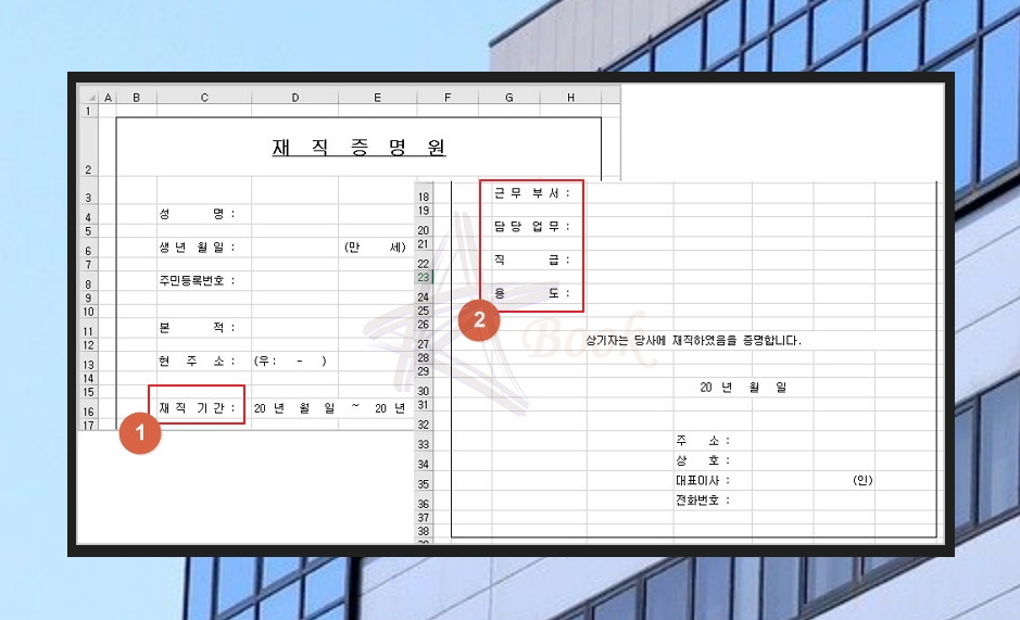 퇴사 경험이 있다거나 신용카드를 만들 때 재직증명서를 발급받아보셨다면 아실텐데요. 재직기간, 근무부서, 담당업무, 직급, 용도 정도으로 들어가는 내용은 많지 않답니다. 가장 중요한 것은 회사직인 또는 대표이사 인감이오니 이부분은 꼭 챙기세요.