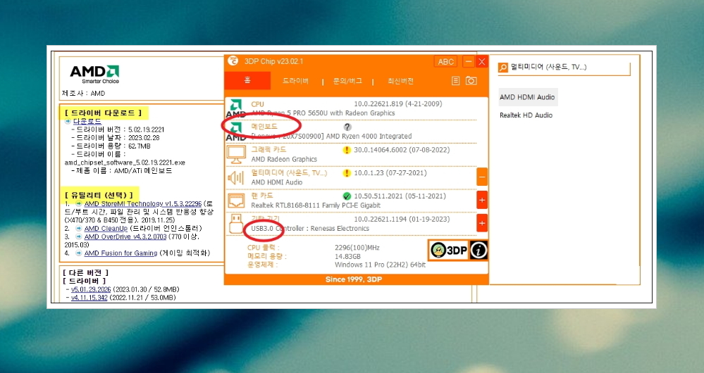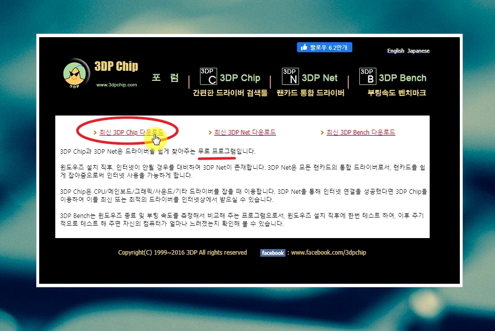 3dp chip 사이트에서 최신 3dp chip 프로그램을 다운 받아 실행합니다. 설치 없이 바로 프로그램을 사용할 수 있습니다.