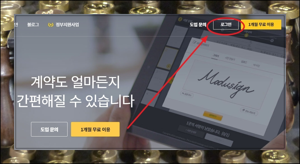 2. 그럼 어떻게 컴퓨터로 무료도장을 만드는지 제작 방법을 순서대로 알려드리겠습니다. 일단 온라인 전자계약 서비스 업체의 홈페이지에 접속해야 합니다. 이곳에서는 전자계약에 사용할 수 있도록 도장 제작 서비스를 무료로 제공하고 있어요.