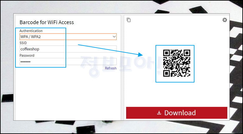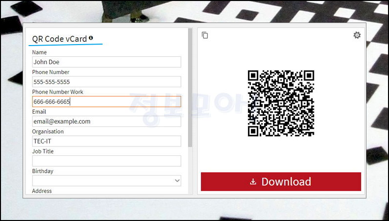 4) 빈칸을 모두 채웠으면 무료 QR코드 만들기 완료입니다. 순식간에 오른쪽 화면에 미리보기로 볼 수 있어요. Download 버튼을 클릭하면 이미지 파일로 내려받을 수 있습니다.