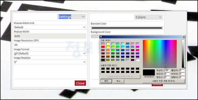 6) 미리보기 화면에서 오른쪽 상단에 있는 톱니바퀴를 클릭하면 설정 페이지가 열립니다. 추가적으로 세부적인 설정이 가능해요. 검은 색이 식상하다면 다른 색으로 QR코드 만들기 가능합니다.