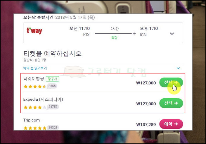 5) 지금까지 찾은 땡처리 상품을 예약해보겠습니다. 이용하고 싶은 업체를 선택해 주세요.