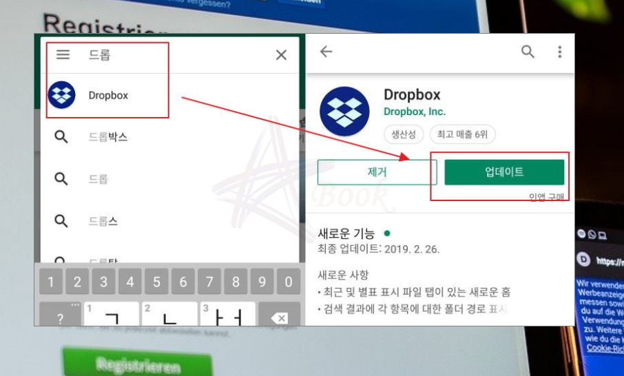 우선 스마트폰에 어플리케이션을 하나 설치해야 해요. 바로 Dropbox 인데요. 이 어플을 이용하면 스마트폰으로 사진을 촬영할 때마다 자동으로 컴퓨터에 전송할 수 있어요. 인터넷을 이용하기 때문에 케이블을 연결할 필요가 없어요. Wifi만 사용하게 설정할 수 있으니 데이터 걱정은 하지 않으셔도 되고요. 구글 플레이 스토어나 애플의 앱 스토어를 실행해서 드롭박스를 검색하면 쉽게 찾으실 수 있어요.