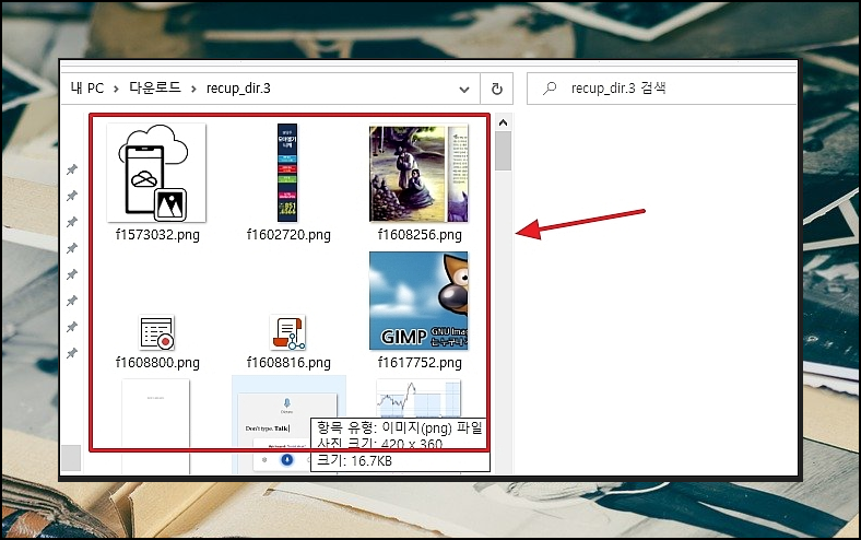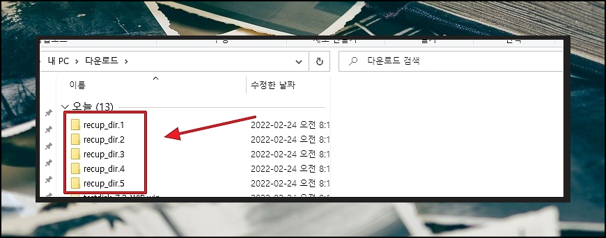 제가 지정한 폴더를 보면 recup_dir로 시작하는 폴더가 여러 개 생성되었음을 알 수 있습니다. 폴더를 클릭하여 안을 들여다 보겠습니다.