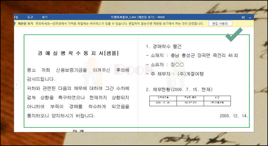이번에는 경매 실행 착수 통지서 양식을 다운 받아 보았어요. 이 밖에도 인터넷우체국 사이트에서는 계약해제를 통보한다거나 반품을 요청하거나 손해배상을 청구할 때 사용할 수 있는 무료서식이 준비되어 있어요.