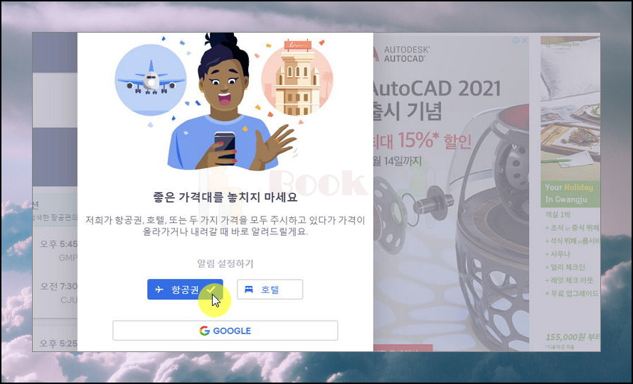 5. 알뜰한 예약을 위한 꿀팁을 활용해보세요. [가격 변동 알림 받기] 버튼을 클릭해보면 이번에 찾은 국내선 항공권의 가격보다 저렴한 티켓이 나타났을 때 알림을 받을 수 있어요. 급하게 예매해야 하는 경우가 아니라면 해당 기능을 활용해 보세요.