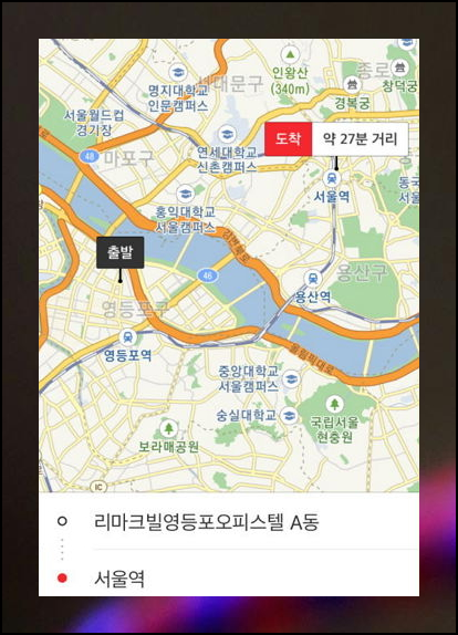 출발지와 도착지 아래에 거리 표시가 되어 있는데요. 해당 버튼을 누르면 맵으로 보실 수 있습니다. 콜택시를 타고 어디로 가야 될지 알아보기에 좋아요. 콜택시를 부르는법을 진행하는는 동안에 지도를 통해 가는법이 어떻게 되는지 알아보기에 좋습니다.