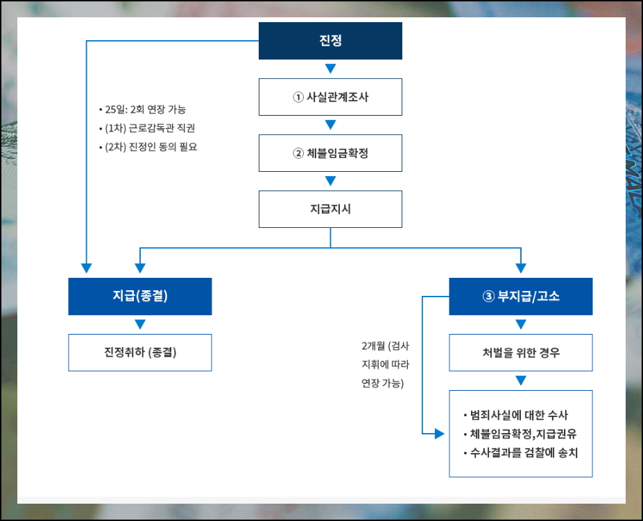 사업장에서는 근로자가 퇴직한 후 2주 안에 퇴직금을 지급해야 해요. 하지만 바로 처벌이 이루어지진 않습니다. 먼저 임금체불 진정서를 제출하고, 이후에도 해결되지 않으면 근로기준법 위반으로 고소를 진행하게 됩니다.