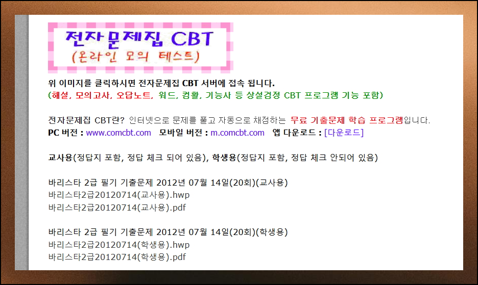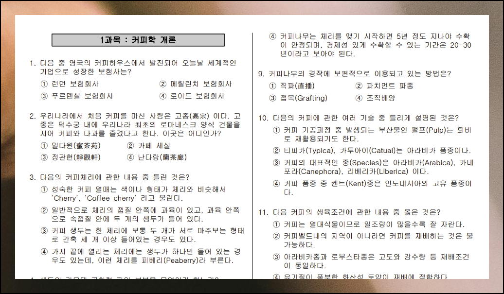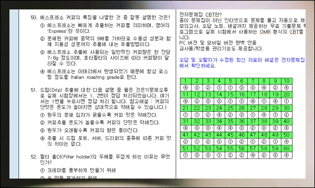 바리스타 2급 기출문제집 및 정답표 다운로드