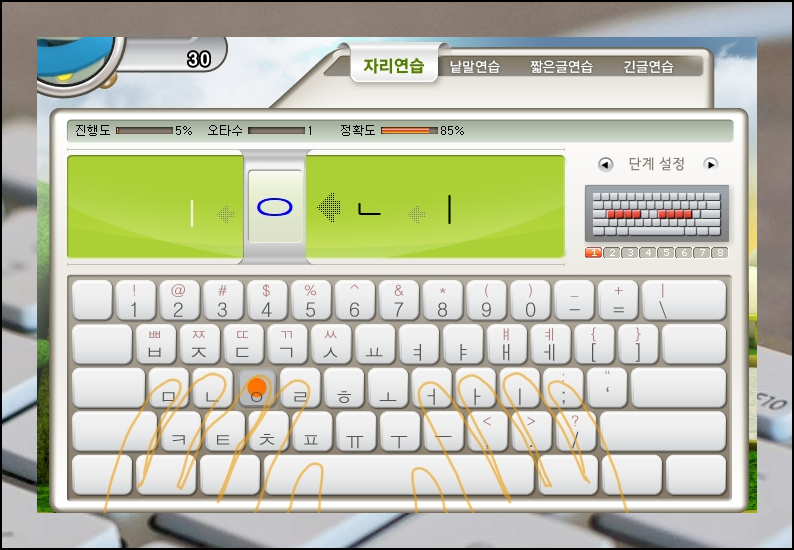 초보자는 자리부터 시작해서 낱말, 짧은 글, 긴 글 순서로 진행하시면 좋습니다.
