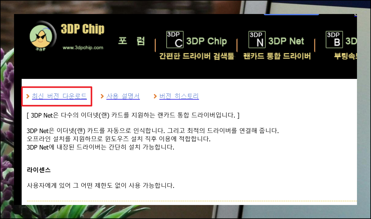 여기까지 했는데도 안 된다면, 연결이 안될때는 랜카드 드라이버를 새로 설치해볼 차례예요. 3dp net이라는 프로그램을 이용하면 누구나 쉽게 할 수 있답니다.