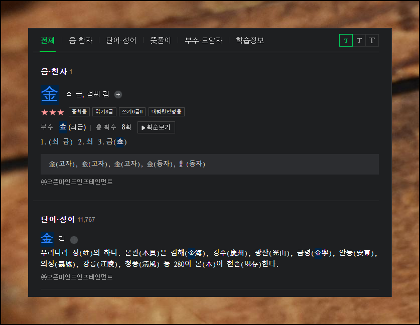 다음과 네이버 모두 한문사전을 잘 운영하고 있어요. 네이버는 추가로 인명용 여부나 유니코드 정보까지 보여줍니다. 취향에 따라 골라 쓰시면 좋아요.
