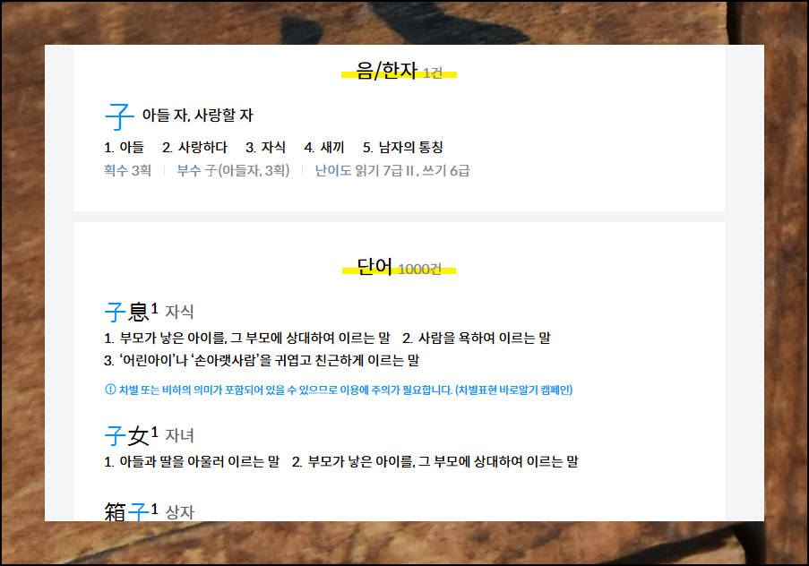온라인 한문사전의 장점은 방대한 자료를 담을 수 있다는 거예요. 예를 들어 금자만 해도 천 개가 넘는 관련 단어가 있어서 제대로 된 학습이 가능합니다. 이런 건 옥편을 통해서는 불가능한 일이죠.