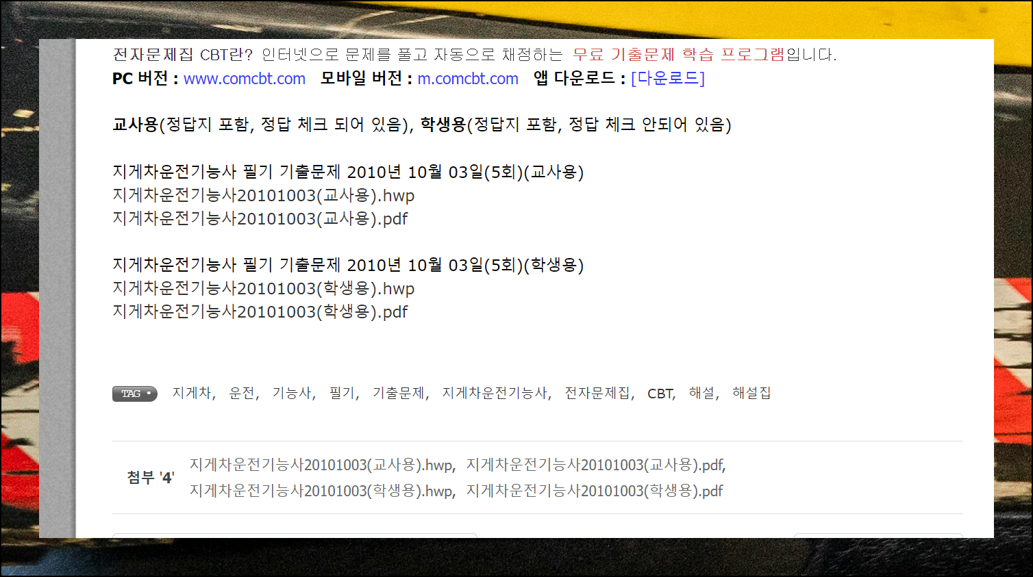 자격증 공부의 메카 comcbt 사이트에서는 지게차운전기능사 기출문제를 다운받아 학습할 수 있어요. 시험 준비에 꼭 필요한 자료를 무료로 제공합니다.