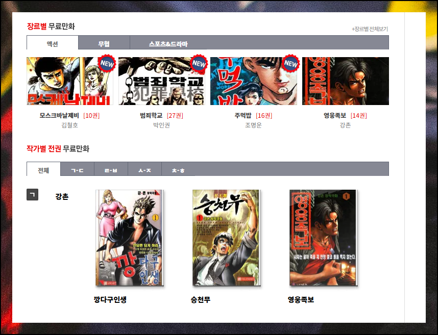 스포츠경향에서 무협부터 액션, 드라마를 포함한 여러 가지 장르의 작품이 한가득이에요. 장르별, 작가별로 정리된 리스트를 통해 원하는 무료 만화를 쉽게 찾을 수 있습니다. 모든 작품은 처음부터 끝까지 완독이 가능해요.