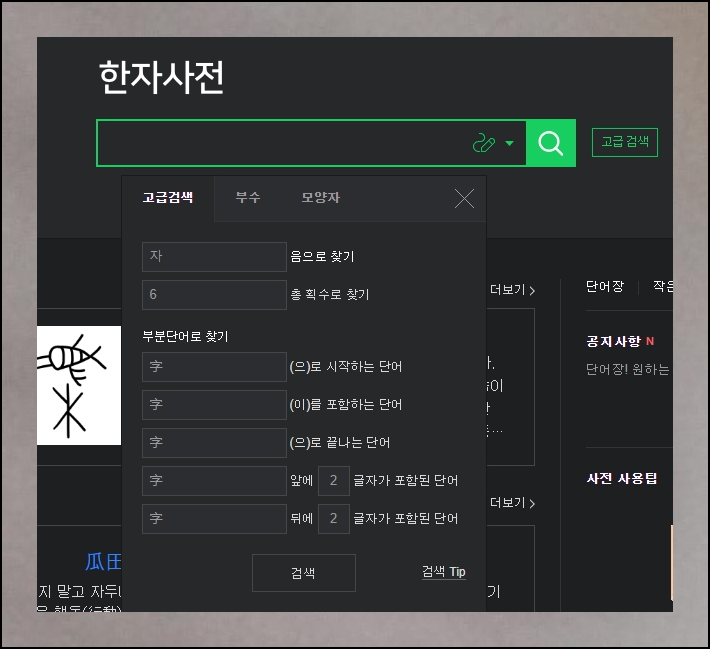 고급 검색에서는 다양한 방법으로 한자를 찾을 수 있어요. 발음, 획수, 부수별 검색 방법을 활용해보세요. 지금부터 알려드리는 검색 방법을 따라 하다 보면 금방 익숙해질 거예요.