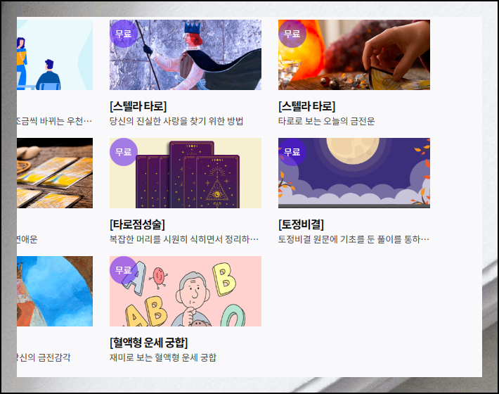 홈페이지 중앙에서 [무료 운세] 메뉴를 찾을 수 있어요. 해당 메뉴를 선택하면 여러 가지 서비스가 많이 나옵니다. 여기에서 우측 하단에 보면 우리가 찾는 토정비결 서비스를 찾을 수 있어요. 클릭하면 쉽게 이용할 수 있으니 한번 해보시길 바랍니다.