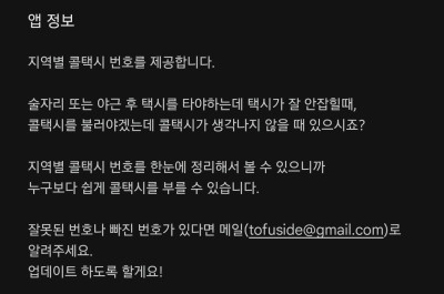 50만이 넘는 사람들이 선택한 믿음직한 어플이에요. 서울을 포함한 전국의 모든 콜택시 업체 전화번호를 모아놓았습니다. 제대로 된 정보로 업데이트가 되어 있어서 더욱 안심하고 이용하실 수 있어요. 어디서든 필요한 전화번호를 쉽게 찾을 수 있답니다. 리스트 형태로 정리되어 있어 원하는 정보를 빠르게 확인할 수 있죠.