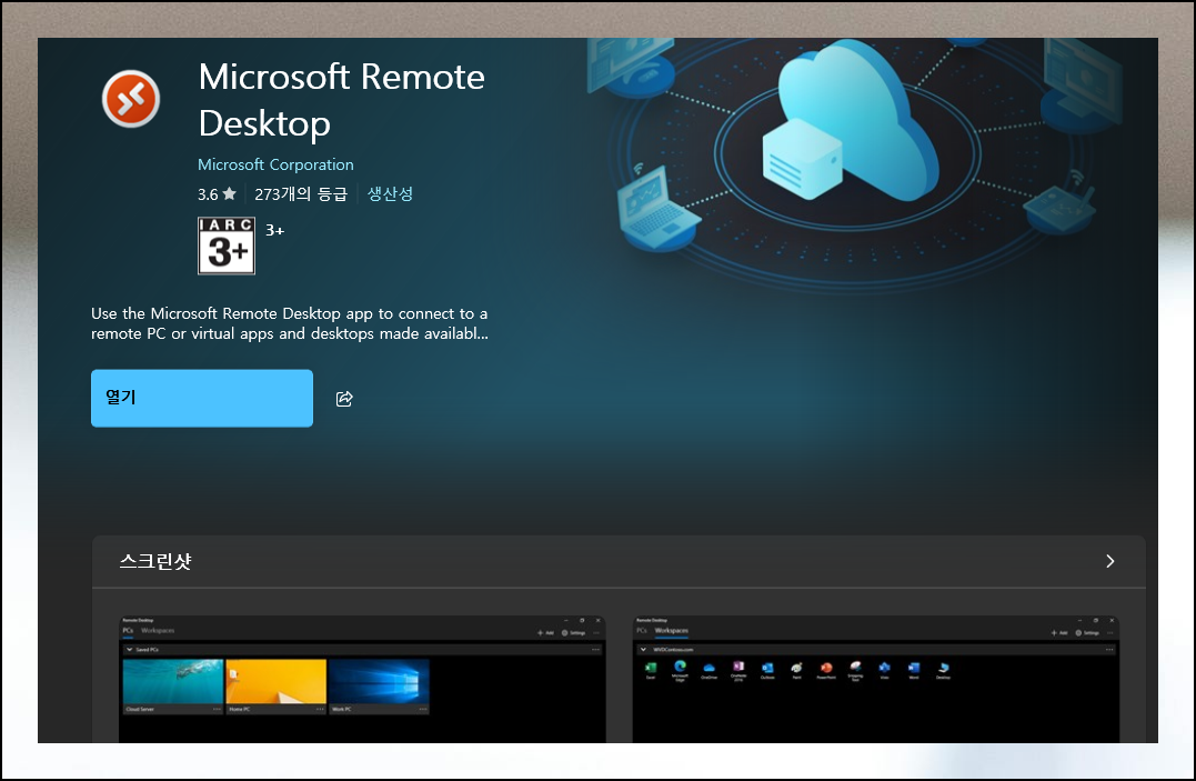 마이크로소프트에서 무료로 제공하는 원격 데스크톱 프로그램이 눈에 띄네요. 설치 버튼만 누르면 곧바로 사용할 수 있습니다.
