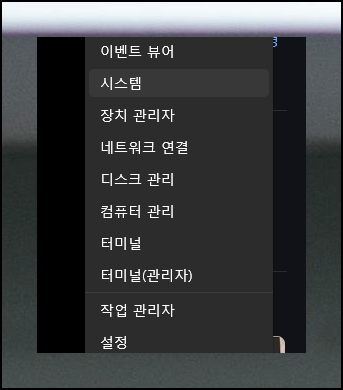 원격으로 제어할 컴퓨터도 설정이 필요해요. 시작 버튼을 우클릭하면 여러 메뉴가 나타납니다. 여기에서 "시스템" 메뉴를 선택해주세요.