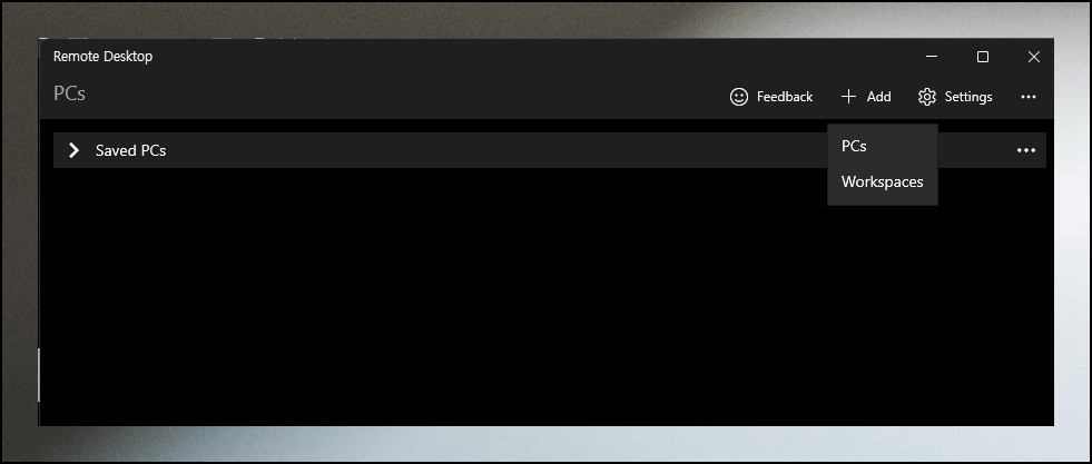 데스크톱 프로그램을 실행해볼까요? 오른쪽 위에서 Add 버튼을 발견할 수 있어요. 누르면 PCs와 다른 옵션이 보이는데, PCs를 선택해 연결을 시작해주세요.
