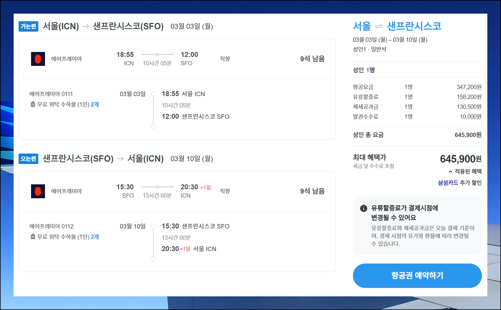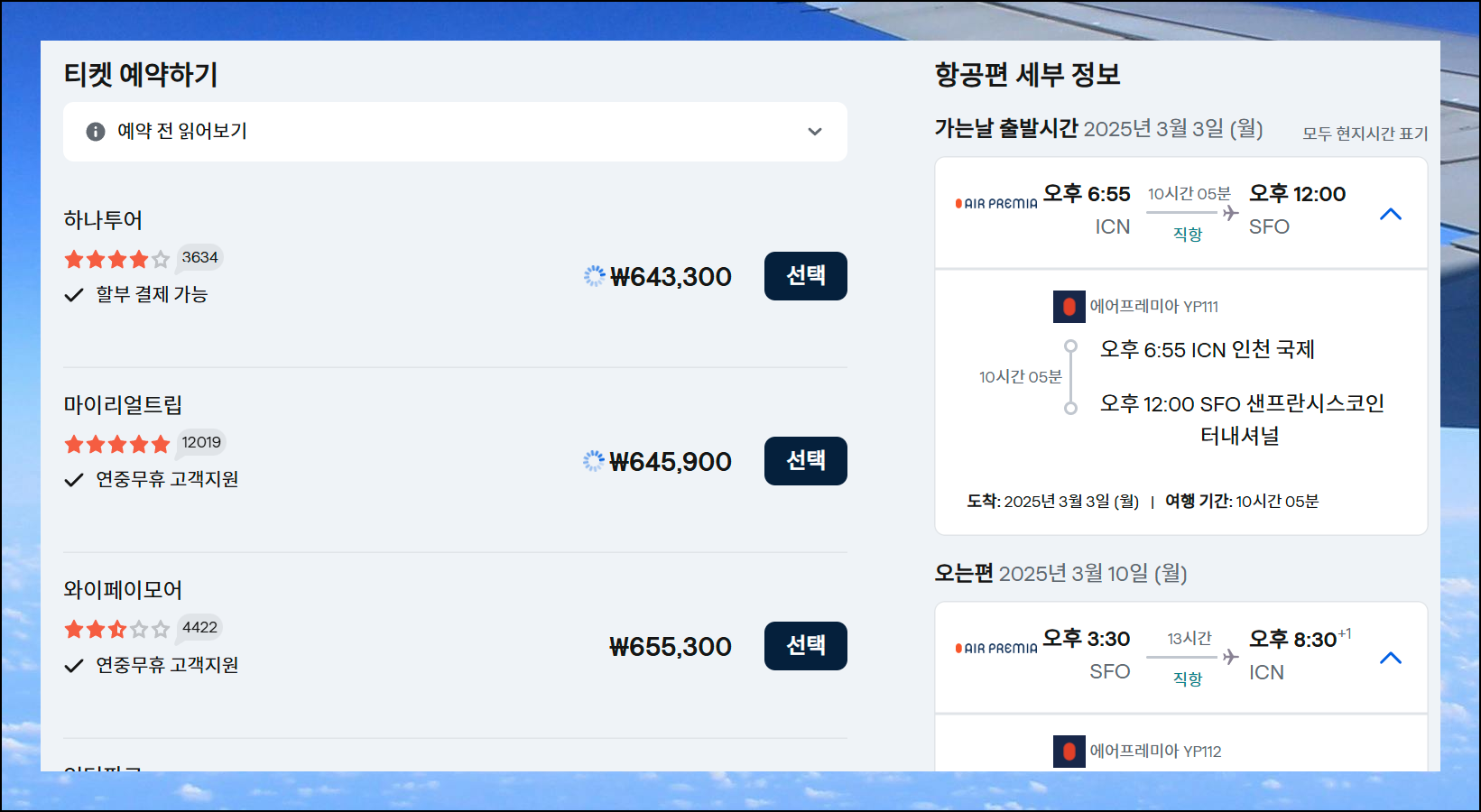 (6) 항공편 선택하기