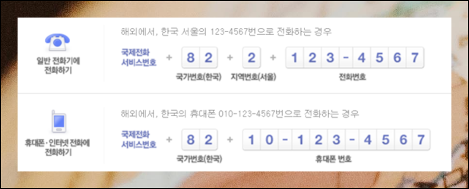 중국에서 한국으로 통화할 때는 한국의 국가코드와 지역코드를 사용해요. 특히 중요한 점은 지역코드나 전화번호 앞에 있는 '0'은 빼고 눌러야 한다는 것이에요. 이전 단계와 해외통화 연결 방법에 있어서 거의 차이가 없다는 것을 알 수 있습니다. '0'번을 제외하는 부분은 국제전화 거는법의 핵심 포인트니 꼭 기억하세요.