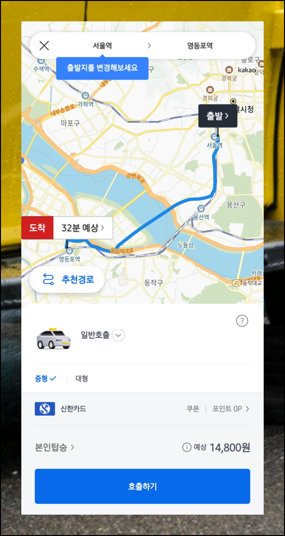 특히 안전에 신경 쓰는 분들이라면 유용할 것 같아요. 참고로 택시 정보가 어플에 표시되어 이를 지인에게 공유도 할 수 있습니다. 이런 식으로 택시를 안전하고, 간편하게 부르기 가능해요.