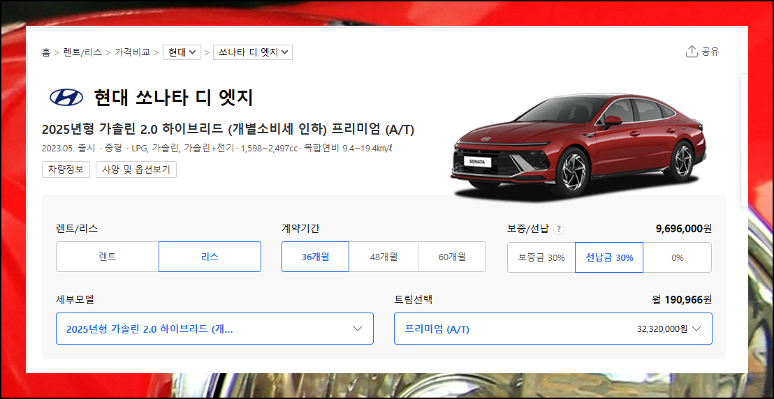 이렇게 온라인에서 정확한 자동차 리스가격표 시스템을 활용해봤어요. 현대뿐만 아니라 다른 브랜드 차량 정보도 쉽게 파악 가능하니 직접 선택해보세요.