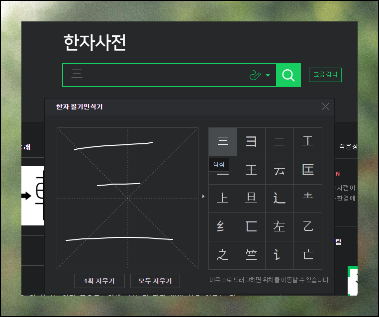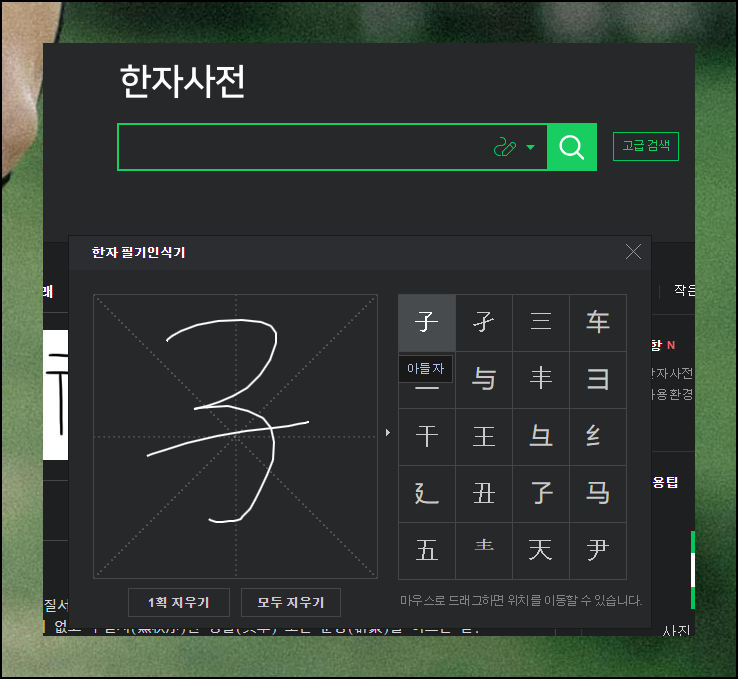 이 도구는 단순히 마우스로 보이는 데로 모양을 그리기만 하면 원하는 글자를 즉시 찾아주기 때문입니다. 게다가 찾은 한자에 대한 부수, 획순, 의미는 물론 관련된 단어와 고사성어까지 한 번에 확인할 수 있어 학습 효율이 크게 높아집니다.
