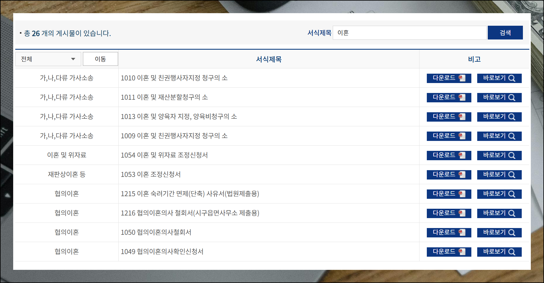 2,000개가 넘는 법률 양식이 있는 자료실에서 이혼서류를 찾으려면, 서식제목 검색창에 "이혼"이라고 입력하고 검색해보세요. 무료로 필요한 정보를 더 빠르게 찾을 수 있답니다.