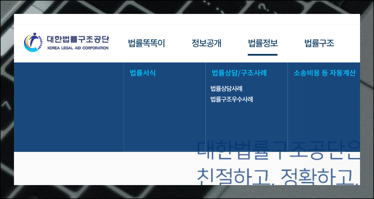 대한법률구조공단 홈페이지에서 자료실에 접속하는 방법은 간단해요. 메뉴에서 [법률정보]를 클릭한 다음, [법률서식]을 선택하기만 하면 됩니다. 필요한 법적인 문서를 누구나 쉽게 찾을 수 있어요.