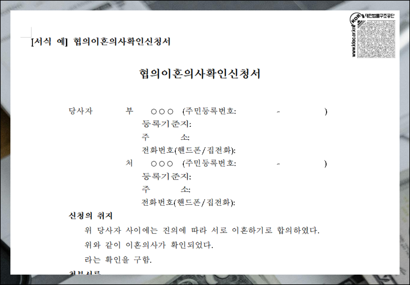 이혼서류 양식 무료다운, 협의이혼부터 재산분할까지 한번에
