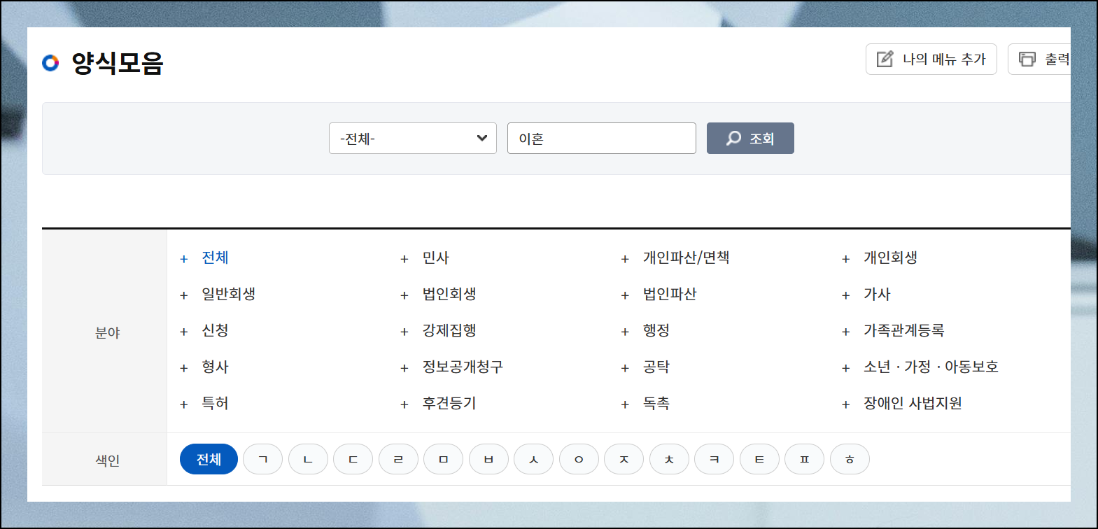 법원에서 운영하는 사이트를 방문하면 신청서부터 양육권 협의서까지 필요한 모든 서류를 한 곳에서 찾을 수 있어요. 특히 사이트 내 검색 기능을 활용하면 20가지가 넘는 다양한 이혼 관련 서식들을 쉽게 찾아볼 수 있습니다. 여기에서 자신의 상황에 맞는 서류를 출력하여 사용하면 돼요.