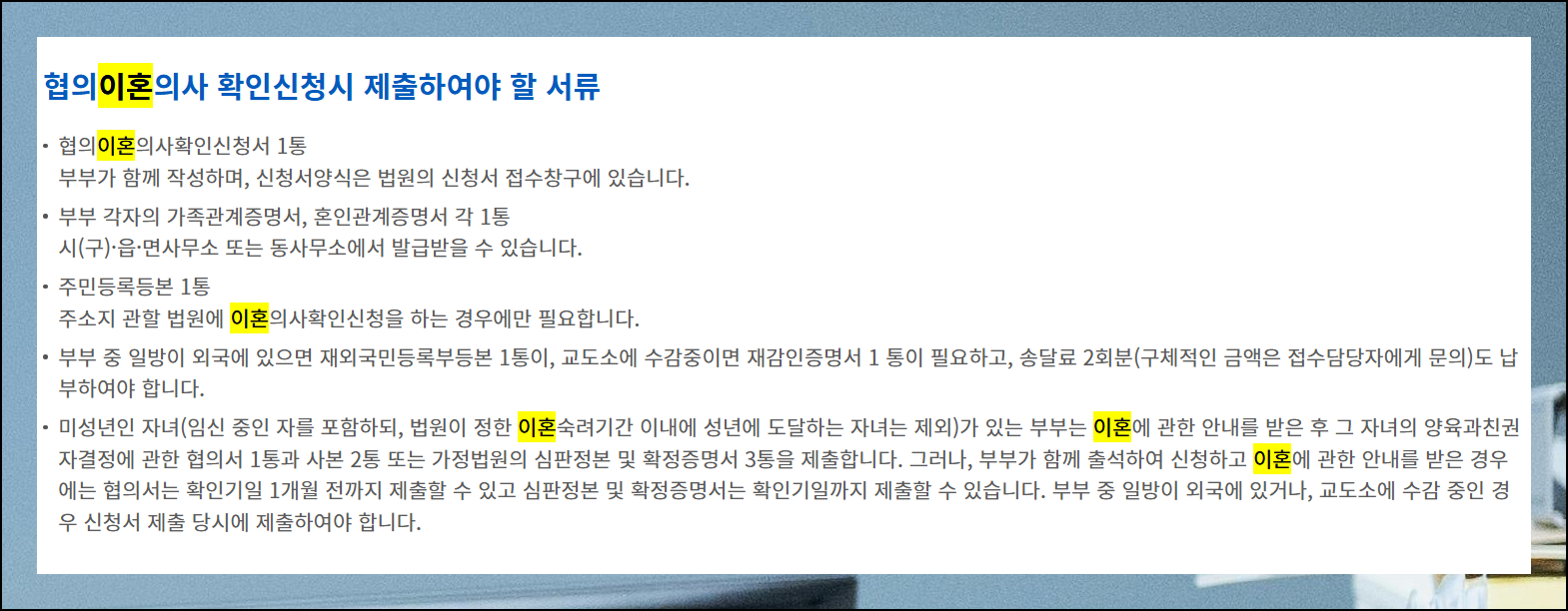 (5) 이혼 관련 문서 찾기