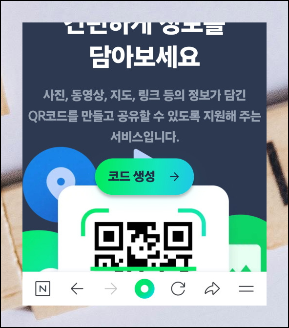 QR코드를 스캔하기 전에 테스트를 할 대상을 직접 제작해볼까요? 네이버에서 운영하는 웹사이트를 이용하면 됩니다.