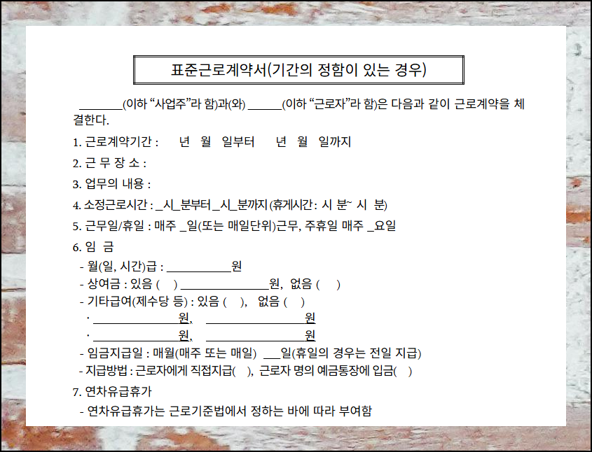 근로기준법상 모든 사업장은 이 근로계약서 양식을 활용해야 하므로, 협약 체결 시 꼼꼼히 확인하는 것이 중요합니다. 이를 통해 직원과 사업주 모두의 권익 보호할 수 있죠.