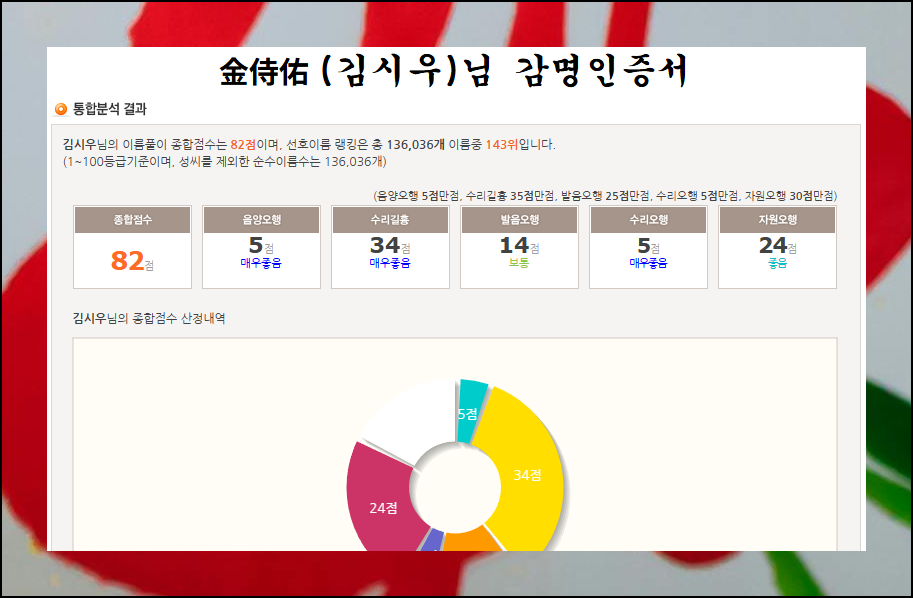 작명 결과는 감명인증서 형태로 생성되며 SNS로 주변 사람들과 공유할 수 있어요. 다양한 의견을 들으며 함께 고민하면 더 좋은 이름을 찾을 수 있습니다. 글자의 의미를 나누며 교류하다 보면 더욱 특별한 이름을 선택할 수 있을 거예요.