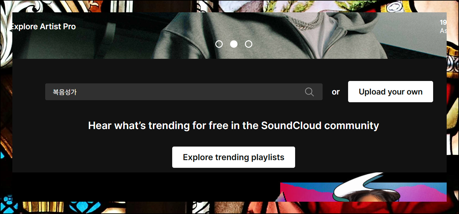 복음성가 무료 감상은 사운드클라우드 사이트를 통해 이용 가능합니다. 해외 웹사이트라 영문으로 되어 있지만, 사용법은 매우 간단해요. 그리고 영어로 된 당연히 한글 가사로 된 복음성가도 이곳에서 연속듣기 할 수 있습니다.