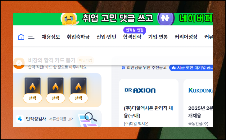사람인 메인 페이지에 접속해 봅시다. 대부분 구직 정보를 얻으려고 방문하는 곳이에요. 하지만 이곳에는 각종 문서도 받아볼 수 있습니다.