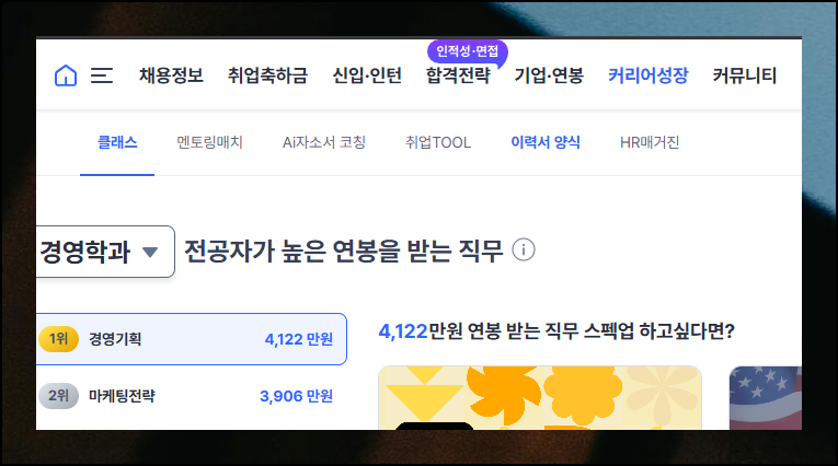 커리어성장 페이지가 나타나면 정말 많은 정보들이 눈에 들어와요. 유용하게 사용할 수 있는 취업TOOL과 함께 우리가 찾는 이력서 양식 자료실이 있습니다. 여기서 우리가 원하는 엑셀 양식을 무료로 받아볼 수 있어요.